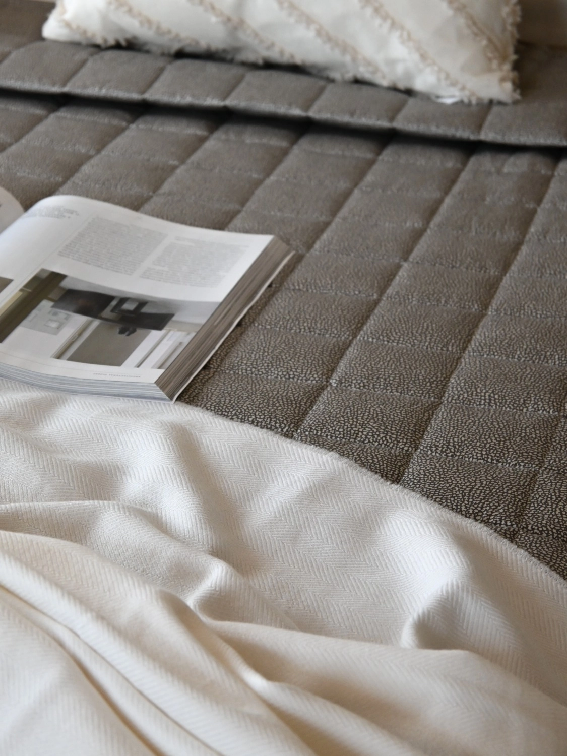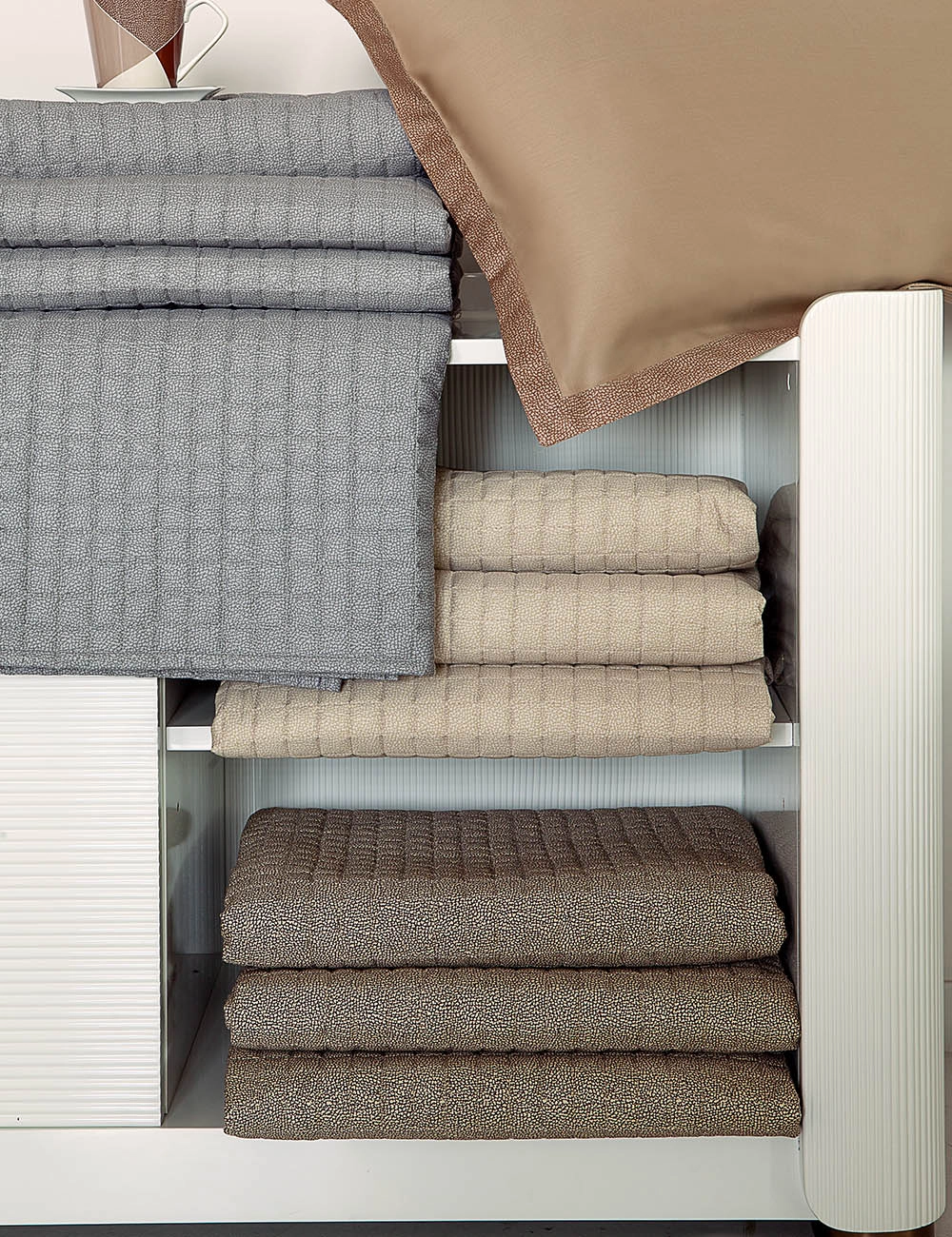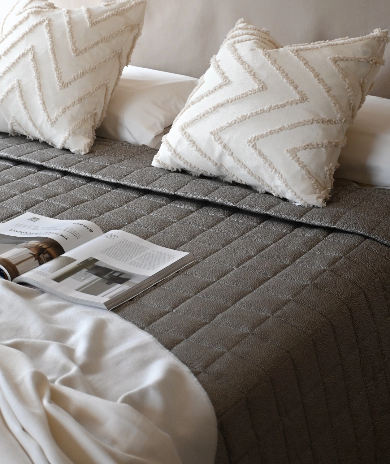 With its 7.5 cm square quilting, rounded corners and artisanal finishing, this Made in Italy quilt enhances the bedroom with contemporary sophistication and exceptional textile quality.