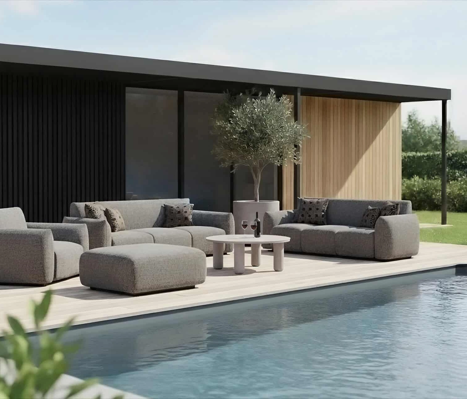Kolor Greige Alpine, czyli elegancki ciepły odcień szarości, nadaje meblowi uniwersalny i ponadczasowy charakter, który doskonale komponuje się zarówno z nowoczesnymi, jak i naturalnymi aranżacjami ogrodowymi. Sofa Dawson idealnie sprawdzi się w projektach mieszkaniowych, hotelowych oraz kontraktowych.